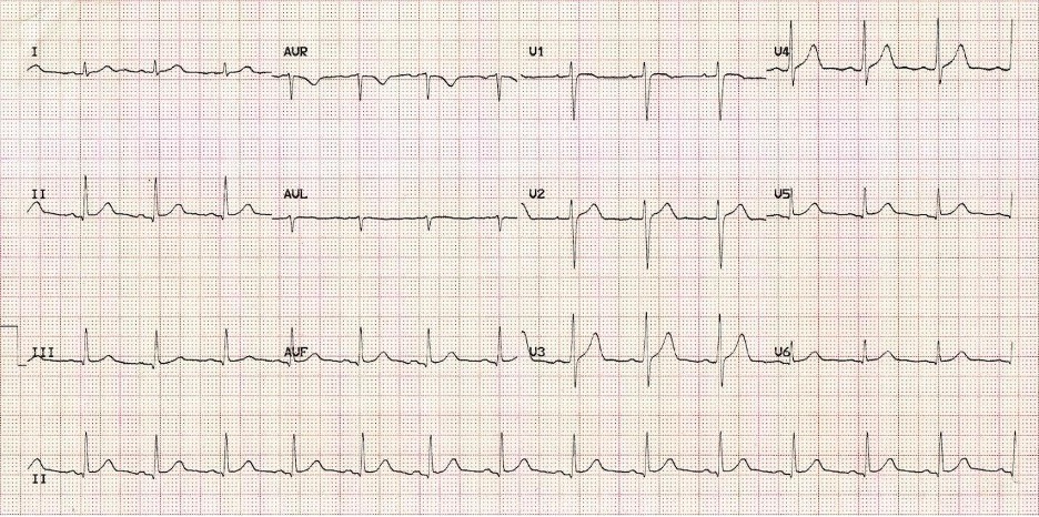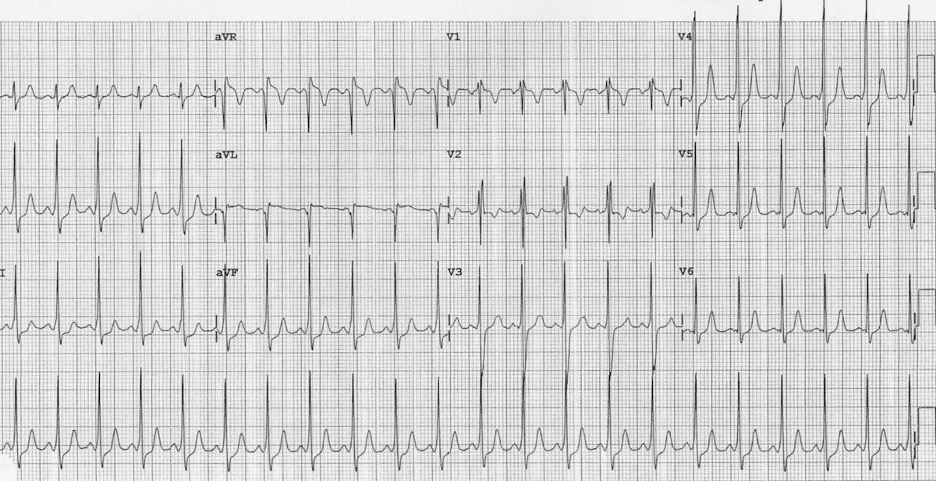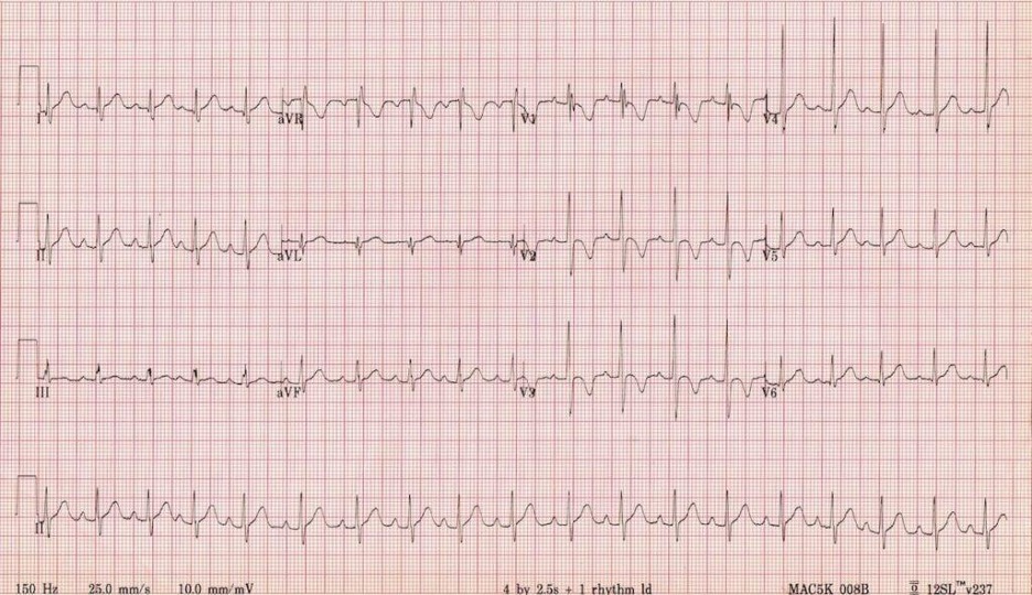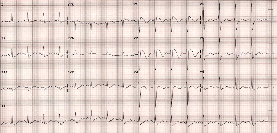 Figure: EKG in patient with viral myocarditis. Image courtesy of Life in the Fast Lane. Image used under the Creative Commons Attribution 4.0 International License.
