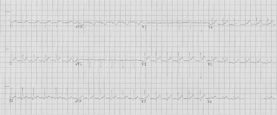 Figure: EKG of patient. Image courtesy of EM Sim Cases. Image used under the Creative Commons Attribution 4.0 International License.