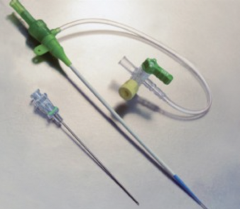Figure 4. Example of a type of central line catheter- Introducer sheath. Used under the Creative Commons Attribution 4.0 International License. Original image located at: emDOCs.net – Emergency Medicine EducationUnlocking Common ED Procedures: Never Let Go - A Review of Central Venous Access Placement - emDOCs.net - Emergency Medicine Education.