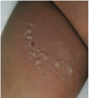 Figures: Patient's rash. Images from Dermnet. Used under the Creative Commons Attribution-NonCommercial-NoDerivs 3.0 (New Zealand).