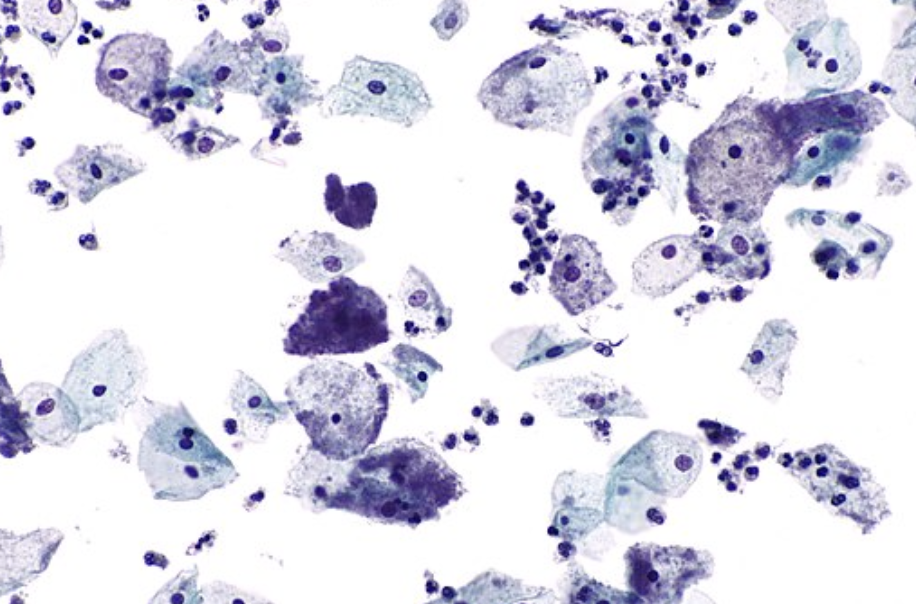 Figure: Clue cells - pap test. Wikimedia Commons. Published January 6, 2011. Image used under the Creative Commons Attribution-Share Alike 3.0 Unported license.